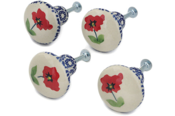 Set of 4 Drawer Pull Knobs 1-1/2 inch - Wind-Blown Poppies