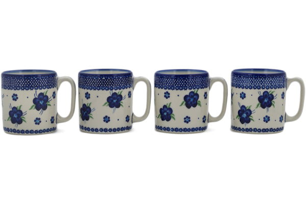 This Polish Pottery 12 oz Set of 4 Mugs - Bleu-Belle Fleur is handmade and handpainted by the Ceramika Bona factory in Boleslawiec, Poland.