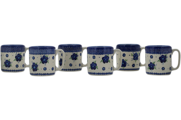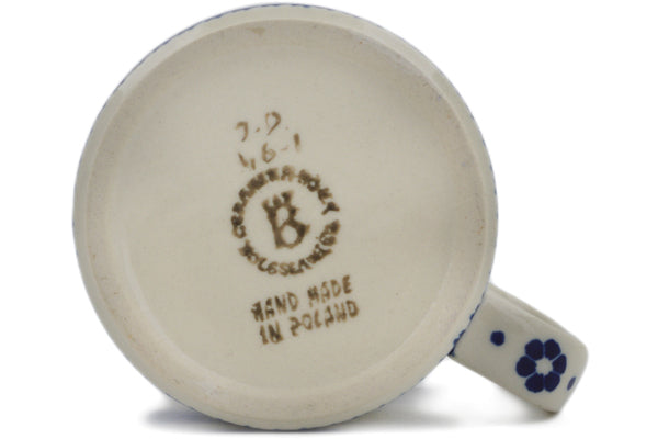 This Polish Pottery 12 oz Set of 6 Mugs - Bleu-Belle Fleur is handmade and handpainted by the Ceramika Bona factory in Boleslawiec, Poland.