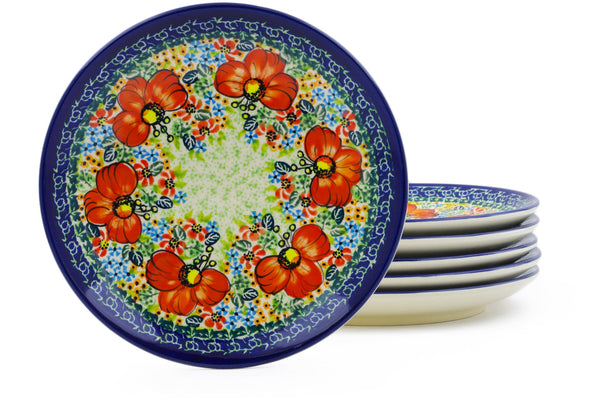 This Polish Pottery 7" Set of 6 Plates - Garden Meadow is handmade and handpainted by the Zaklady Ceramiczne factory in Boleslawiec, Poland.