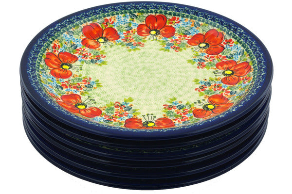 This Polish Pottery 11" Set of 6 Plates - Garden Meadow is handmade and handpainted by the Zaklady Ceramiczne factory in Boleslawiec, Poland.