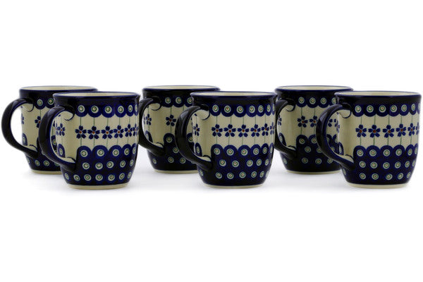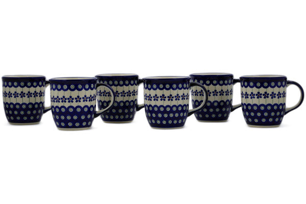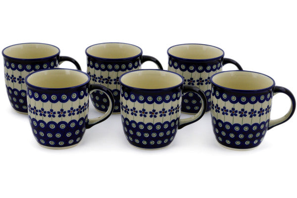 This Polish Pottery 12 oz Set of 6 Mugs - Flowering Peacock is handmade and handpainted by the Zaklady Ceramiczne factory in Boleslawiec, Poland.