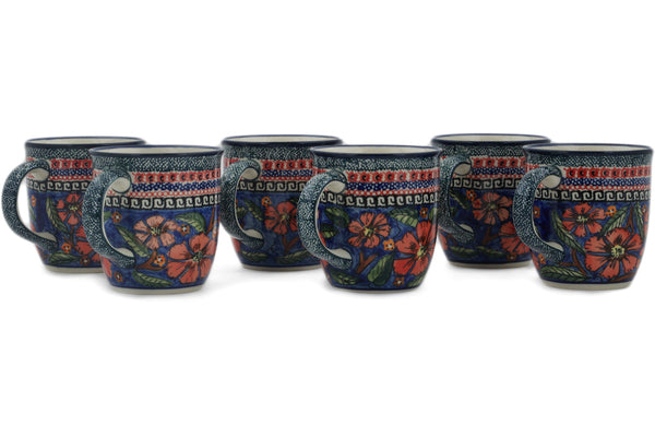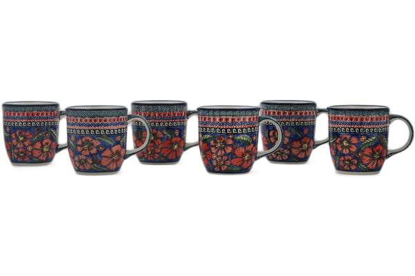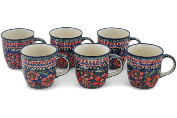 This Polish Pottery 12 oz Set of 6 Mugs - Poppies is handmade and handpainted by the Zaklady Ceramiczne factory in Boleslawiec, Poland.