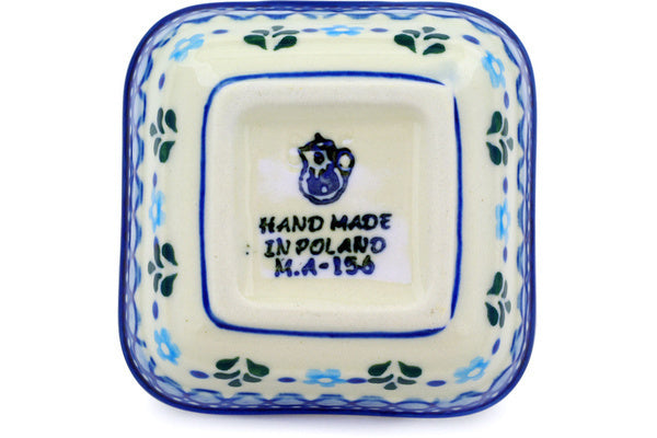 This Polish Pottery 3" Square Bowl - Blue Alysum Patch is handmade and handpainted by the Ceramika Artystyczna factory in Boleslawiec, Poland.