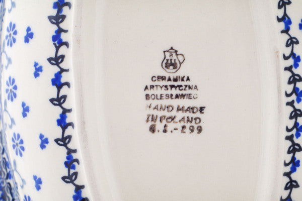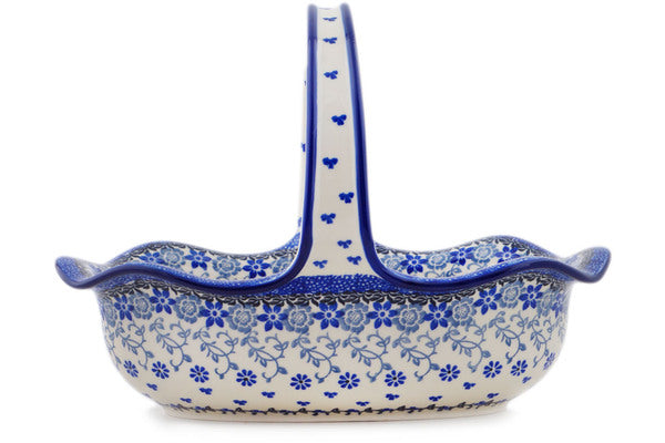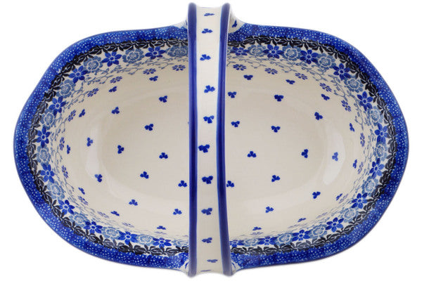 This Polish Pottery 11" Basket with Handle - First Snow is handmade and handpainted by the Ceramika Artystyczna factory in Boleslawiec, Poland.