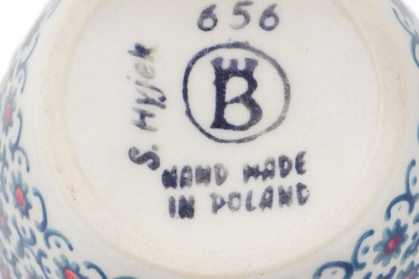 This Polish Pottery 8 oz Mug - Field Of Black Daisies is handmade and handpainted by the Ceramika Bona factory in Boleslawiec, Poland.