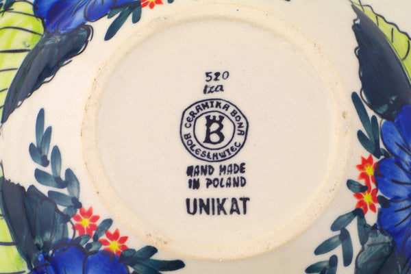 This Polish Pottery 9" Pasta Bowl - Blue Bouquet is handmade and handpainted by the Ceramika Bona factory in Boleslawiec, Poland.