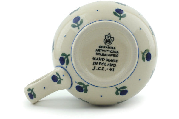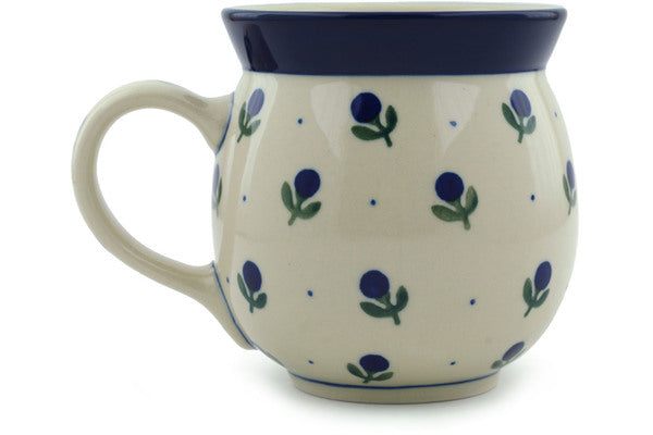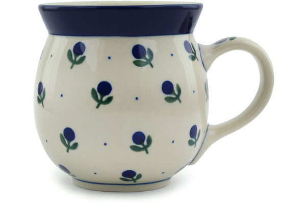 This Polish Pottery 16 oz Bubble Mug - Blue Buds is handmade and handpainted by the Ceramika Artystyczna factory in Boleslawiec, Poland.