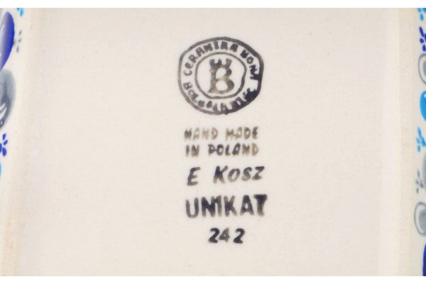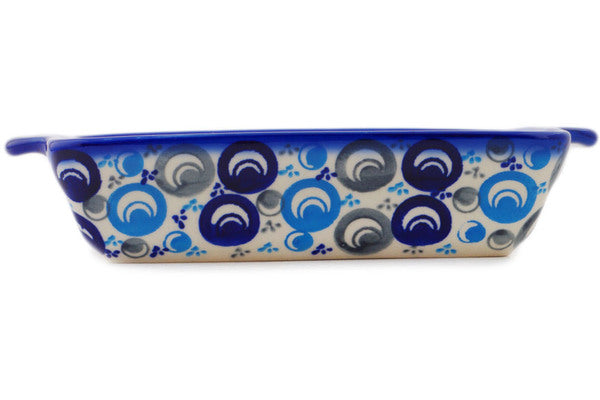 This Polish Pottery 9" Rectangular Baker with Handles - Blue Peacock Eye is handmade and handpainted by the Ceramika Bona factory in Boleslawiec, Poland.