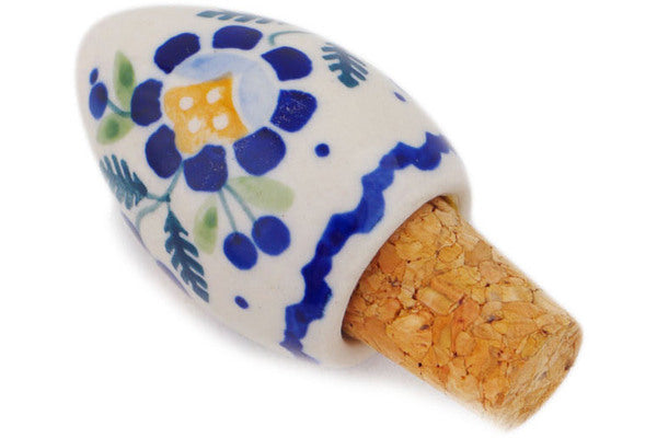 Manufaktura factory stamp | Polish Pottery HouseThis Polish Pottery 3" Bottle Stopper - Orange And Blue Flower is handmade and handpainted by the Manufaktura factory in Boleslawiec, Poland.
