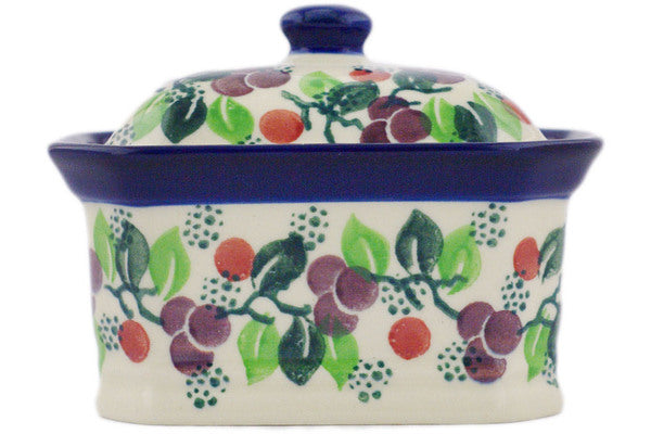 This Polish Pottery 4" Jar with Lid - Cherries Jubilee is handmade and handpainted by the Ceramika Artystyczna factory in Boleslawiec, Poland.