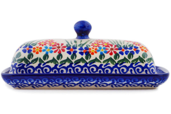 This Polish Pottery 8" Butter Dish - Blissful Daisy is handmade and handpainted by the Ceramika Bona factory in Boleslawiec, Poland.