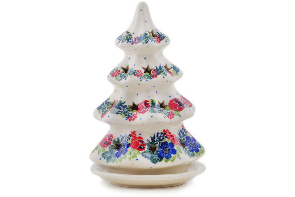 This Polish Pottery 6" Christmas Tree Candle Holder - Springtime Wreath is handmade and handpainted by the Ceramika Artystyczna factory in Boleslawiec, Poland.