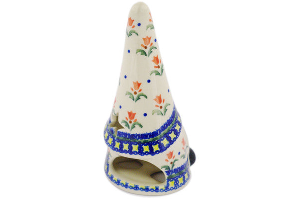 This Polish Pottery 7" Candle Holder - Cocentric Tulips is handmade and handpainted by the Ceramika Bona factory in Boleslawiec, Poland.