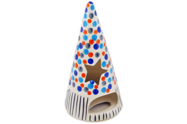This Polish Pottery 7" Candle Holder - Polka Dot Frenzy is handmade and handpainted by the Ceramika Bona factory in Boleslawiec, Poland.