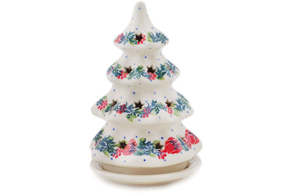 This Polish Pottery 7" Christmas Tree Candle Holder - Springtime Wreath is handmade and handpainted by the Ceramika Artystyczna factory in Boleslawiec, Poland.