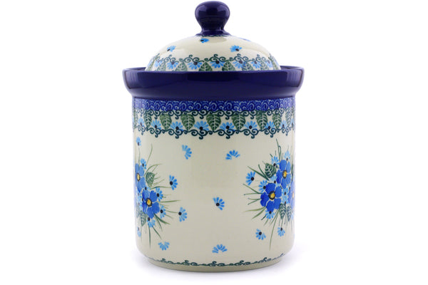 This Polish Pottery 8" Jar with Lid - Forget Me Not is handmade and handpainted by the Ceramika Artystyczna factory in Boleslawiec, Poland.