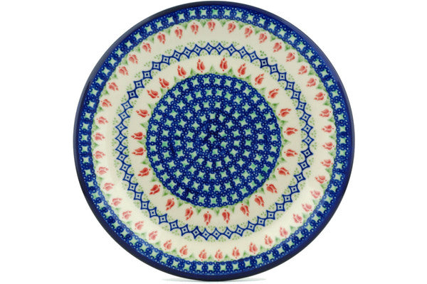 This Polish Pottery 10" Plate - Tulips And Diamonds is handmade and handpainted by the Ceramika Bona factory in Boleslawiec, Poland.