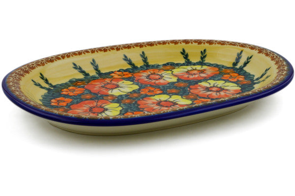This Polish Pottery 11" Oval Platter - Poppy Love is handmade and handpainted by the Ceramika Bona factory in Boleslawiec, Poland.