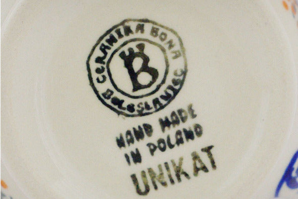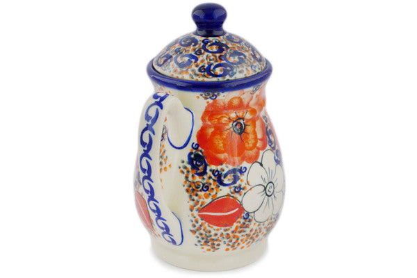 This Polish Pottery 15 oz Pitcher with Lid - Poppy Passion is handmade and handpainted by the Ceramika Bona factory in Boleslawiec, Poland.