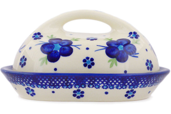 This Polish Pottery 3" Butter Dish - Bleu-Belle Fleur is handmade and handpainted by the Ceramika Bona factory in Boleslawiec, Poland.