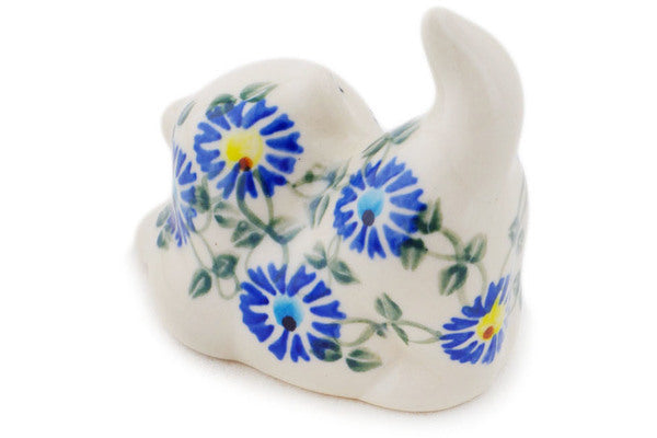 This Polish Pottery 3" Cat Figurine - Blue Thistle Beauty is handmade and handpainted by the Ceramika Bona factory in Boleslawiec, Poland.