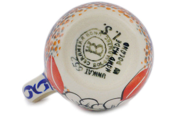 This Polish Pottery 4 oz Creamer - Poppy Passion is handmade and handpainted by the Ceramika Bona factory in Boleslawiec, Poland.