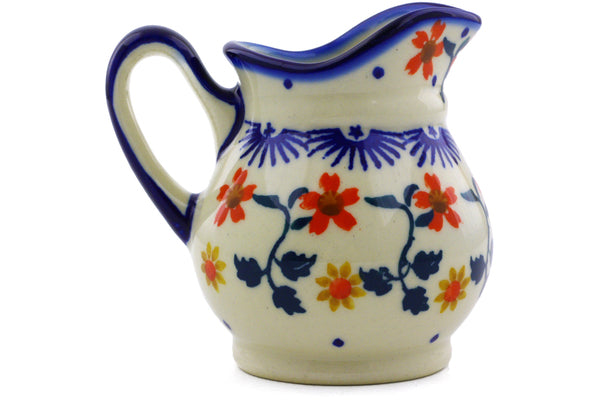 This Polish Pottery 4 oz Creamer - Red Sunflower is handmade and handpainted by the Ceramika Bona factory in Boleslawiec, Poland.