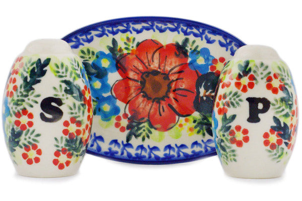This Polish Pottery 5" Salt and Pepper Set - Bold Red Poppies is handmade and handpainted by the Ceramika Bona factory in Boleslawiec, Poland.
