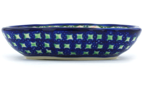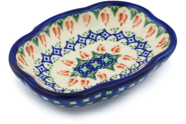 This Polish Pottery 5" Soap Dish - Tulips And Diamonds is handmade and handpainted by the Ceramika Bona factory in Boleslawiec, Poland.