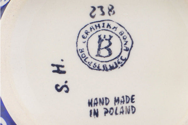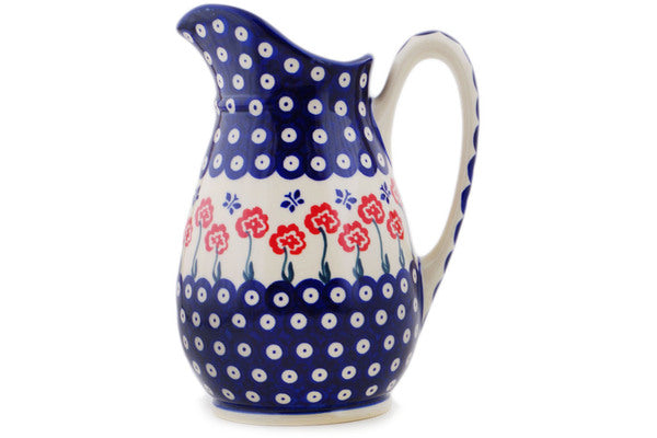 This Polish Pottery 54 oz Pitcher - Blue Eye Spring is handmade and handpainted by the Ceramika Bona factory in Boleslawiec, Poland.