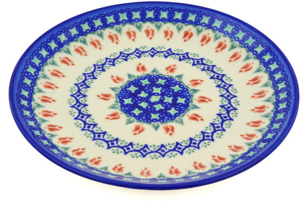 This Polish Pottery 8" Plate - Tulips And Diamonds is handmade and handpainted by the Ceramika Bona factory in Boleslawiec, Poland.