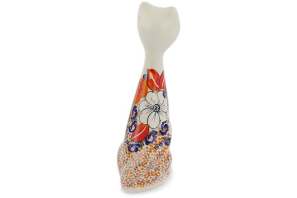 This Polish Pottery 8" Cat Figurine - Poppy Passion is handmade and handpainted by the Ceramika Bona factory in Boleslawiec, Poland.