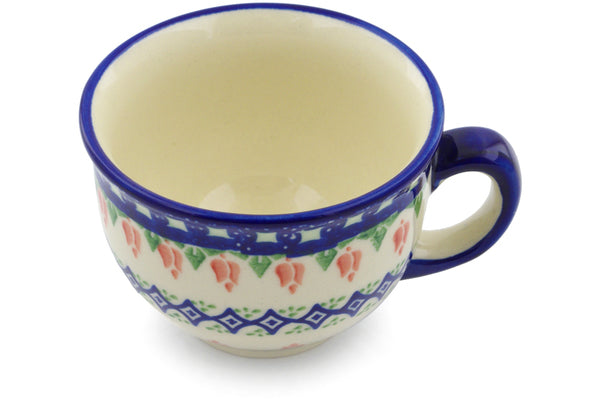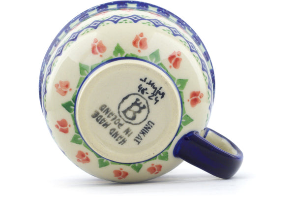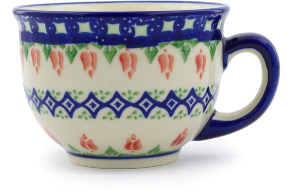 This Polish Pottery 8 oz Cup - Tulips And Diamonds is handmade and handpainted by the Ceramika Bona factory in Boleslawiec, Poland.