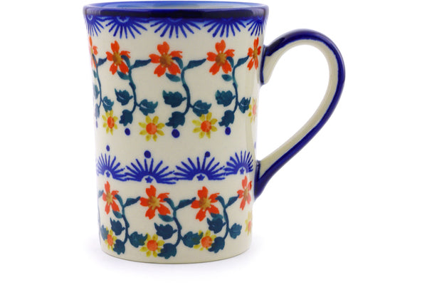 This Polish Pottery 8 oz Mug - Red Sunflower is handmade and handpainted by the Ceramika Bona factory in Boleslawiec, Poland.