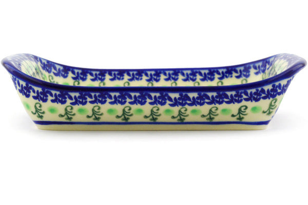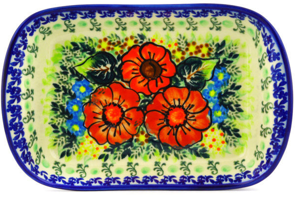 This Polish Pottery 9" Platter with Handles - Bold Red Poppies is handmade and handpainted by the Ceramika Bona factory in Boleslawiec, Poland.