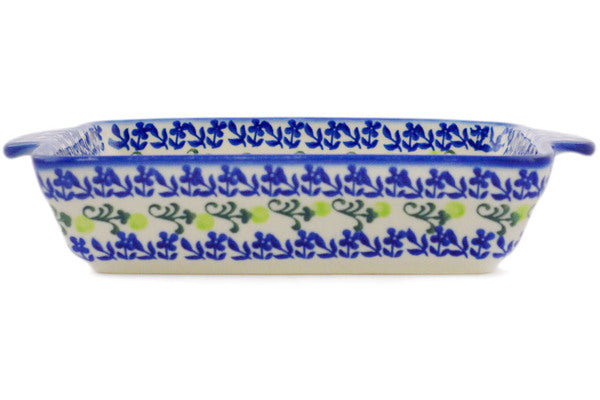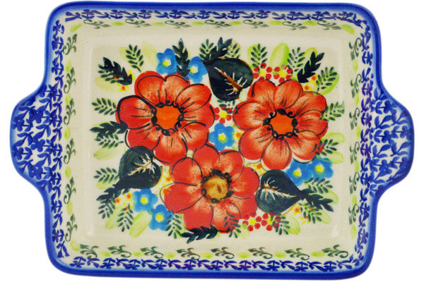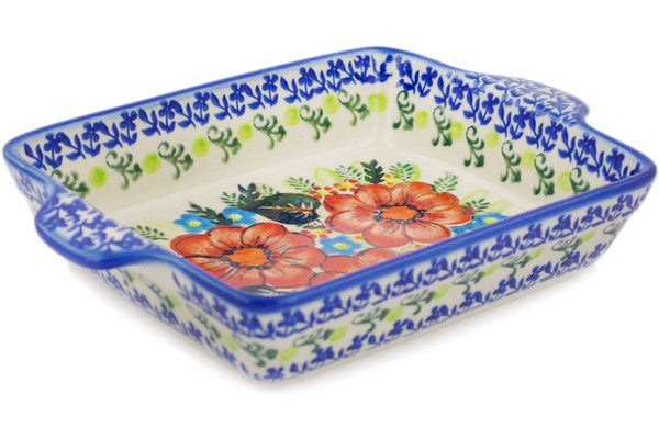 This Polish Pottery 9" Rectangular Baker with Handles - Bold Red Poppies is handmade and handpainted by the Ceramika Bona factory in Boleslawiec, Poland.