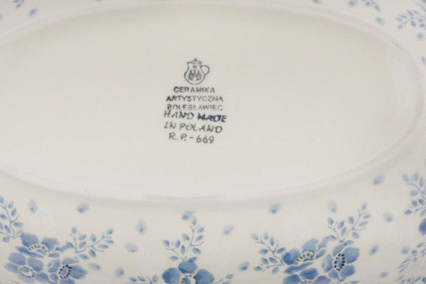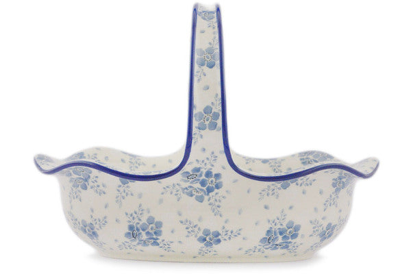 This Polish Pottery 11" Basket with Handle - Rain Clouds is handmade and handpainted by the Ceramika Artystyczna factory in Boleslawiec, Poland.