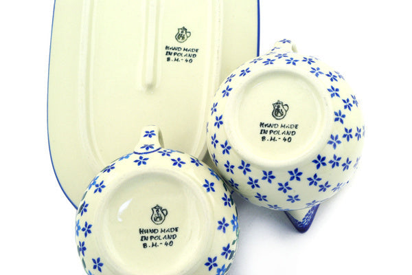 Ceramika Artystyczna factory stamp | Polish Pottery HouseThis Polish Pottery 11" Sugar and Creamer Set - Circle Of Delicacy is handmade and handpainted by the Ceramika Artystyczna factory in Boleslawiec, Poland.