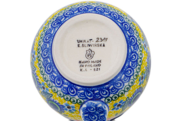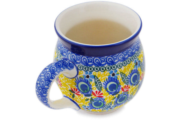 This Polish Pottery 12 oz Bubble Mug - Yellow Peacock Flowers is handmade and handpainted by the Ceramika Artystyczna factory in Boleslawiec, Poland.