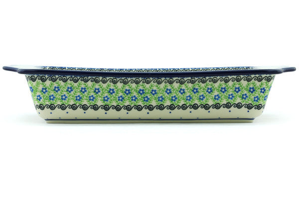 This Polish Pottery 13" Rectangular Baker with Handles - Prairie is handmade and handpainted by the Ceramika Artystyczna factory in Boleslawiec, Poland.