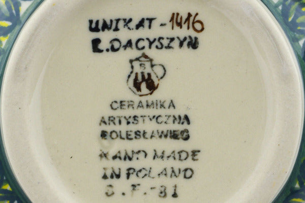 This Polish Pottery 6" Bowl with Loop-Handle - Wetland Reeds is handmade and handpainted by the Ceramika Artystyczna factory in Boleslawiec, Poland.