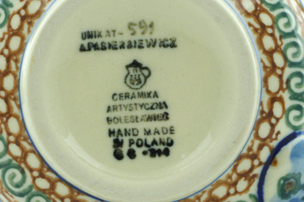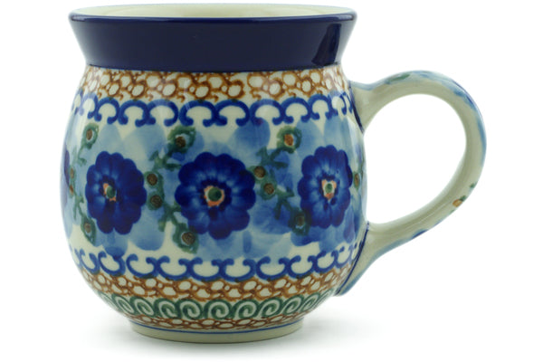 This Polish Pottery 16 oz Bubble Mug - Blue Poppy Circle is handmade and handpainted by the Ceramika Artystyczna factory in Boleslawiec, Poland.