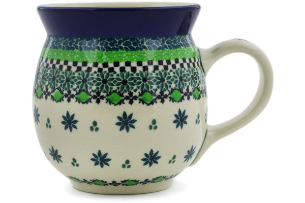 This Polish Pottery 16 oz Bubble Mug - Dotted Efflorescence is handmade and handpainted by the Ceramika Artystyczna factory in Boleslawiec, Poland.
