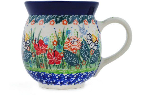 This Polish Pottery 16 oz Bubble Mug - Dove Escape is handmade and handpainted by the Ceramika Artystyczna factory in Boleslawiec, Poland.