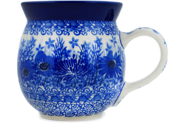This Polish Pottery 16 oz Bubble Mug - Dreams In Blue is handmade and handpainted by the Ceramika Artystyczna factory in Boleslawiec, Poland.