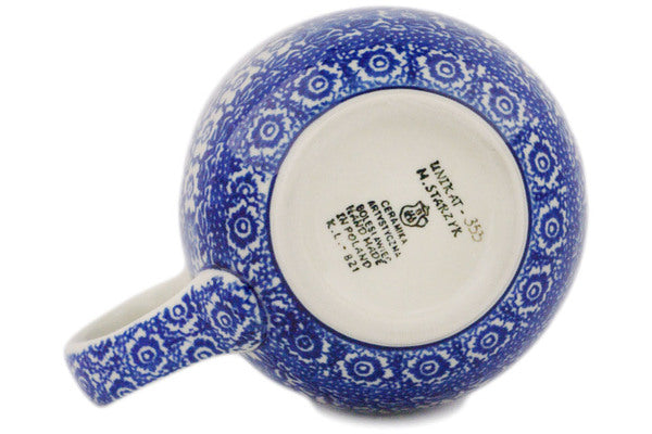 This Polish Pottery 16 oz Bubble Mug - Moody Blues is handmade and handpainted by the Ceramika Artystyczna factory in Boleslawiec, Poland.
