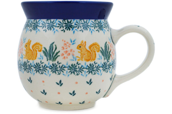 This Polish Pottery 16 oz Bubble Mug - Nuts About You is handmade and handpainted by the Ceramika Artystyczna factory in Boleslawiec, Poland.