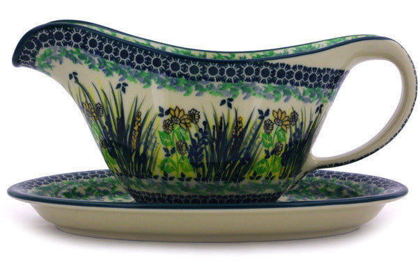 This Polish Pottery 20 oz Gravy Boat with Saucer - Country Harvest is handmade and handpainted by the Ceramika Artystyczna factory in Boleslawiec, Poland.