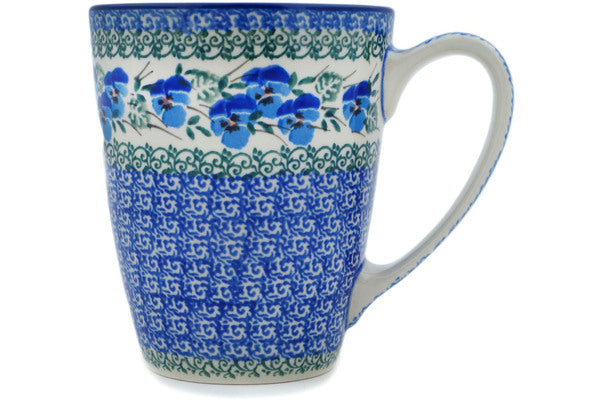 This Polish Pottery 22 oz Mug - Blue Pansy is handmade and handpainted by the Ceramika Artystyczna factory in Boleslawiec, Poland.
